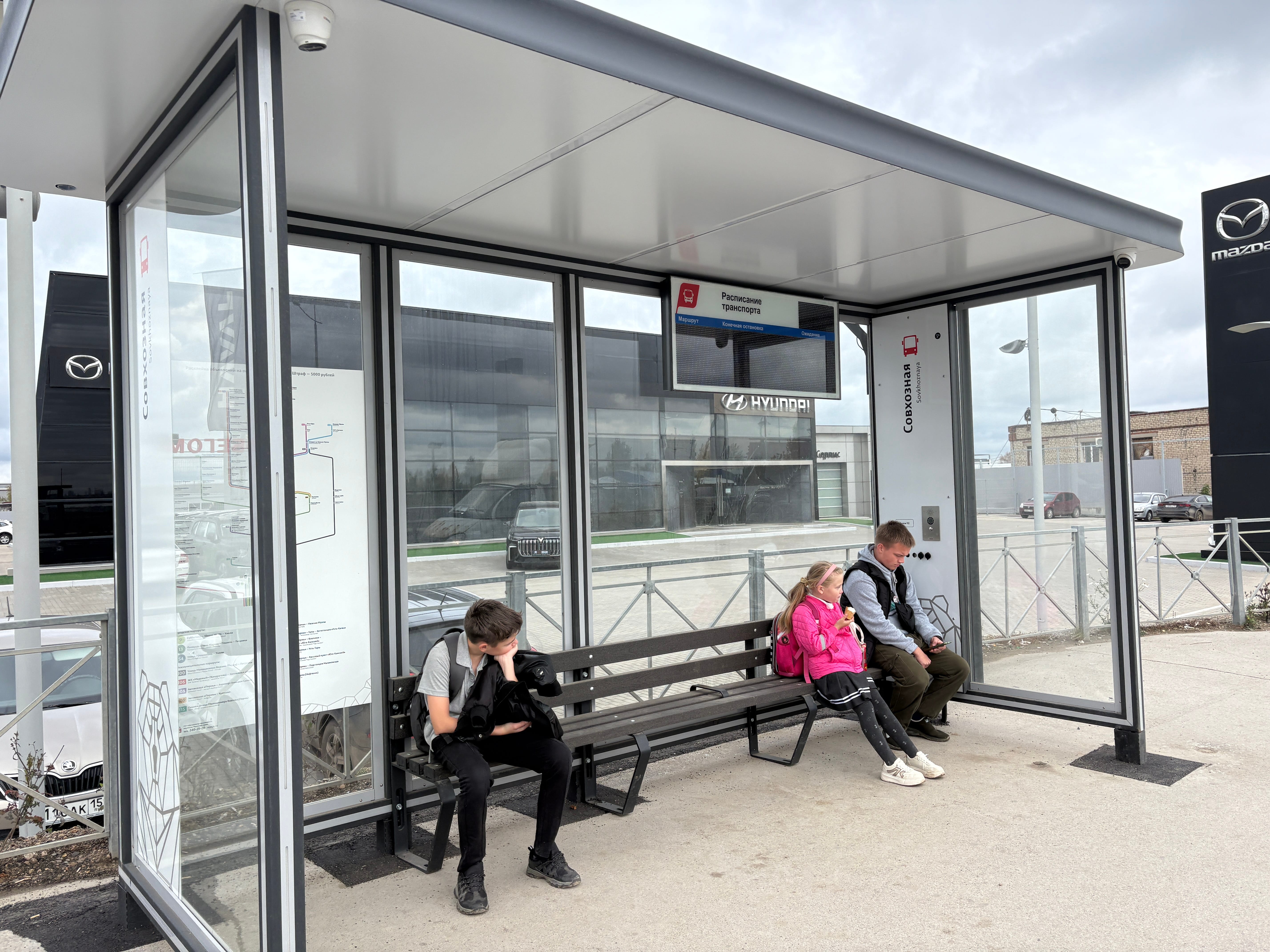 Новые технологичные автопавильоны установили в районе остановок «Верхние Муллы», «Спортшкола Олимпиец», «Совхозная улица», «Хмели», «Песьянка», «Ванюки», «Крохово», «Большое Савино» и др.